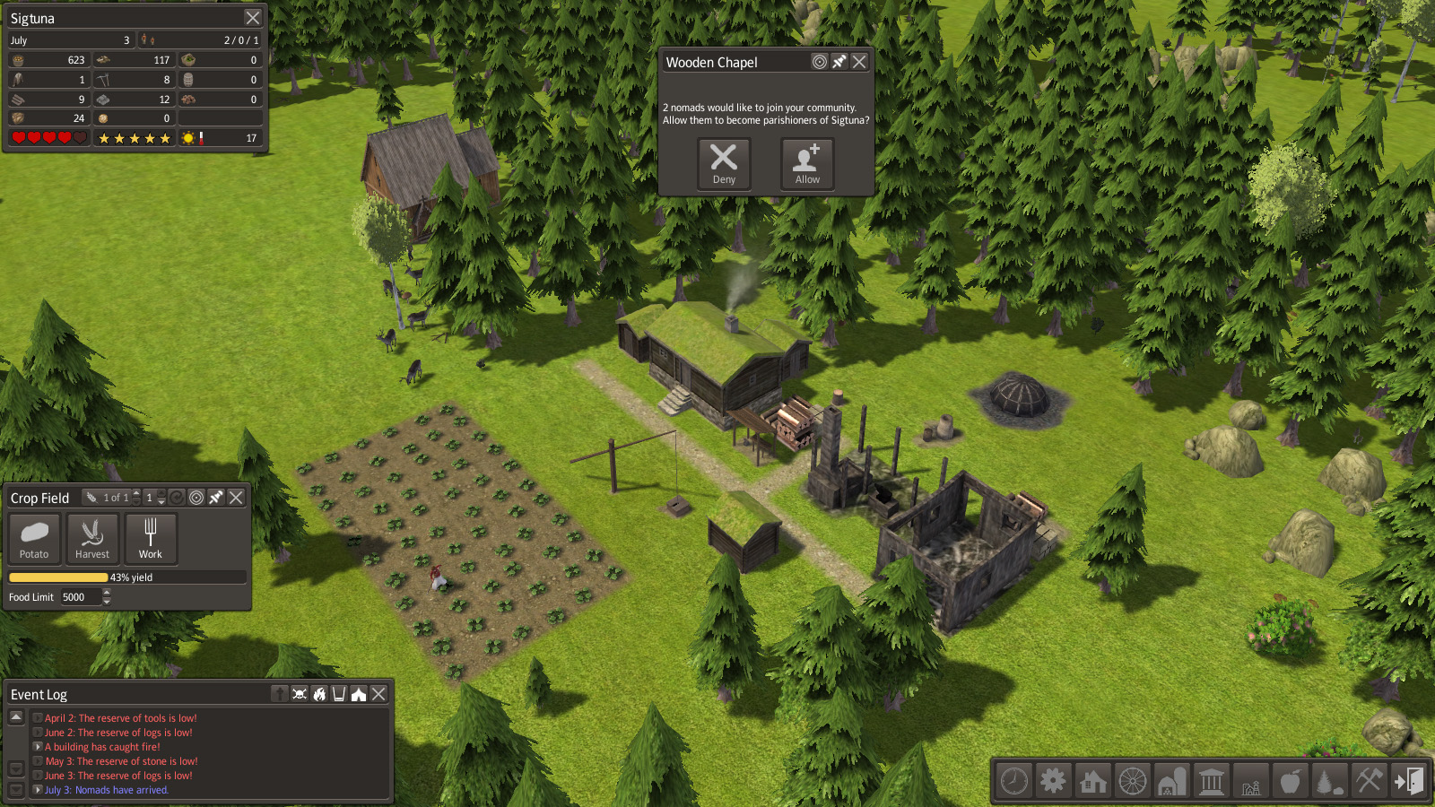 The third year went by in my village and it started with a real catastrophe! I'm not sure what was happened exactly. Maybe daddy did not care about the fire or the Nordic gods were mad with me because I built a christian chapel. We will never know but the smithy was burning in January. Luckily nobody was hurt and no resources lost. Life must go on.
