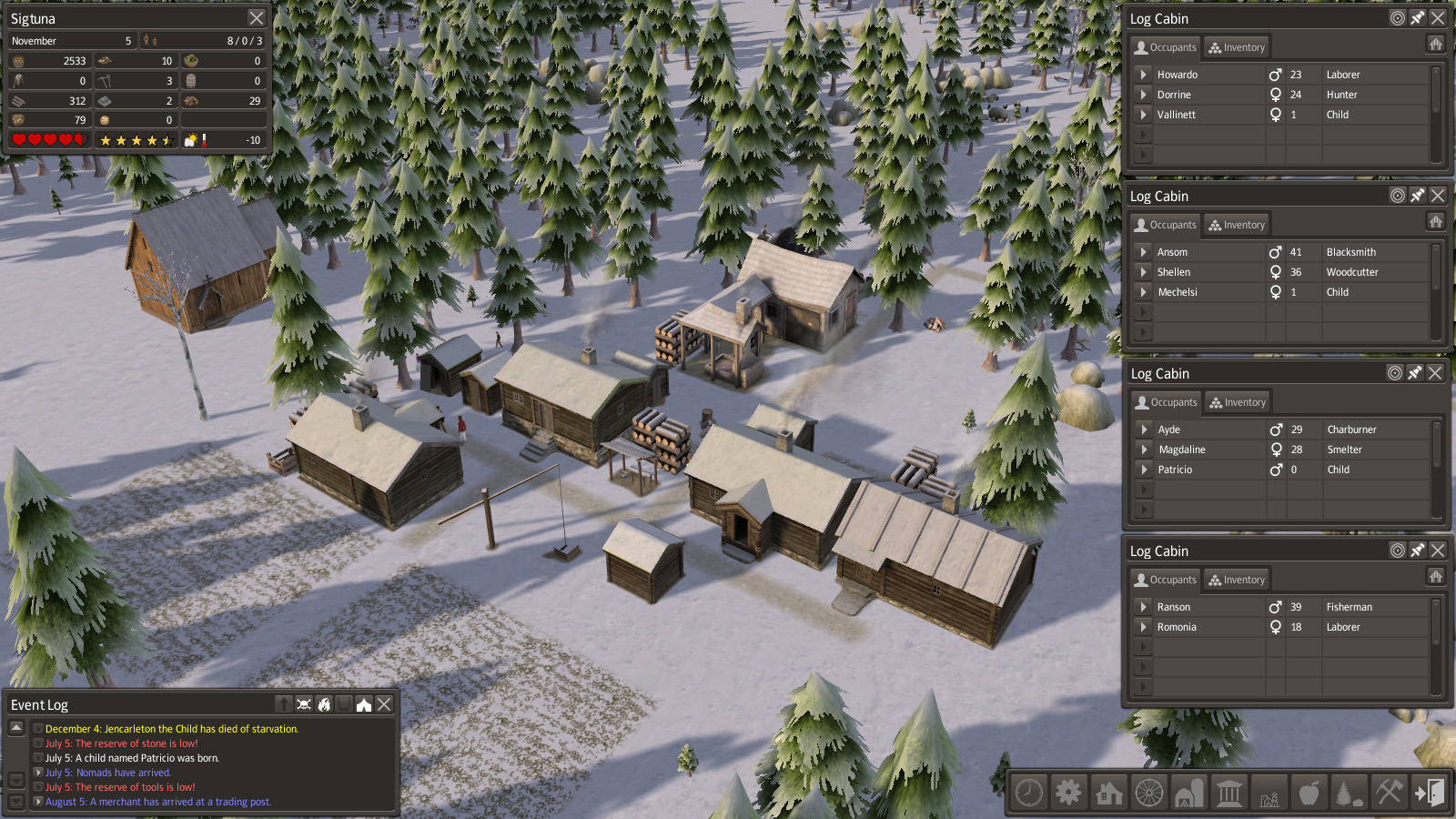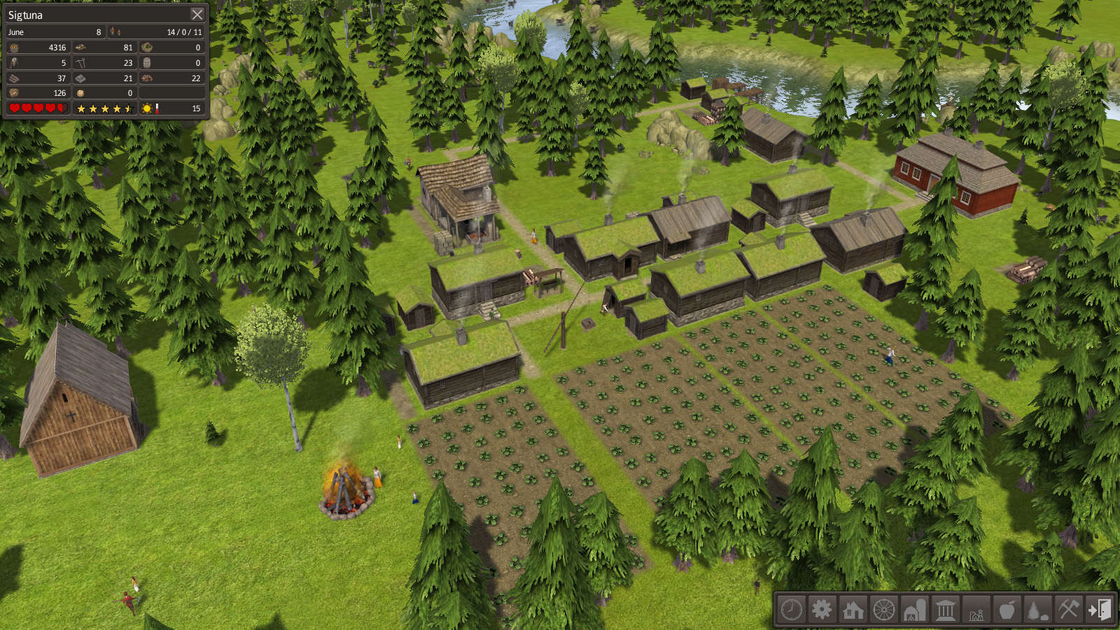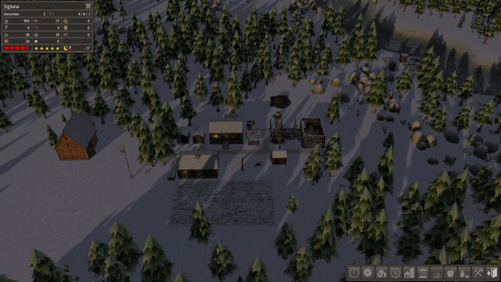 I got a new couple every year and with now 12 workers things go much faster. I still micromanage almost all jobs. My fisherman at the trading dock is the only full time worker. In April I send farmers to the fields, in summer I send all other guys to the forest for berries and mushrooms. In the harvest season I increase the amount of farmers if they have problems there and in winter they are in the forest again to gather firewood. It is already not enough fuel for my 6 houses and so a woodcutter has to works sometimes. The same with blacksmithing and charcoal burning. Hunting season is only if a herd of reindeer is crossing my settlement or if some newcomers need parkas. So it is much to do the whole year and doesn't become boring.