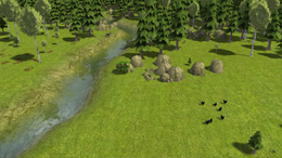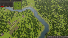 As you can see in the picture there are large swampy areas in the east and south-east at the other side of the river. Where birches grow there is also bog iron. I want to reach these deposits because the next mining location is far away. I already built a stone bridge (Mr. Flopsy). This model looks amazing and is a nice addition to every banished adventure.