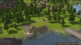 For the newcomers a second house was needed and another project I wanted this year was a trading dock. The shortest way to the river leads through the stone field in the north-east and in September it was finished. I want to start trading next year, probably with logs. I gave the mini trader a Nordic footprint and reduced the capacity to 1600 (100 per tile). Together with the limit of only one worker it gives me a realistic feeling to have a very small dock and a reason to build a bigger trade port later.