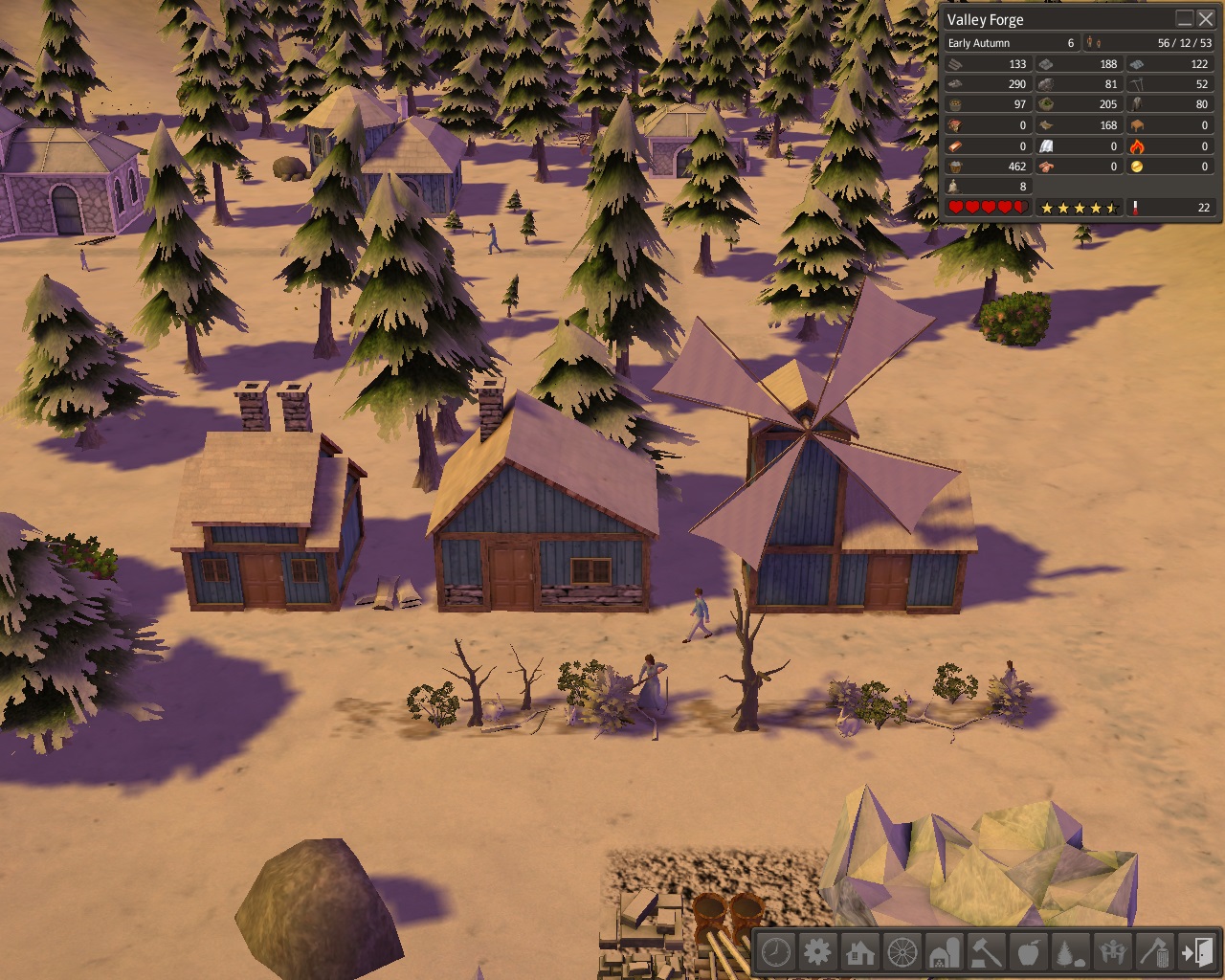 A tiny food trader was built and stocked with some of the surplus hide coats and iron tools.  We could only hope that a river boatman would make it through the icebergs to our trading post.  We would soon begin work on the forge itself and have higher quality tools to trade.
