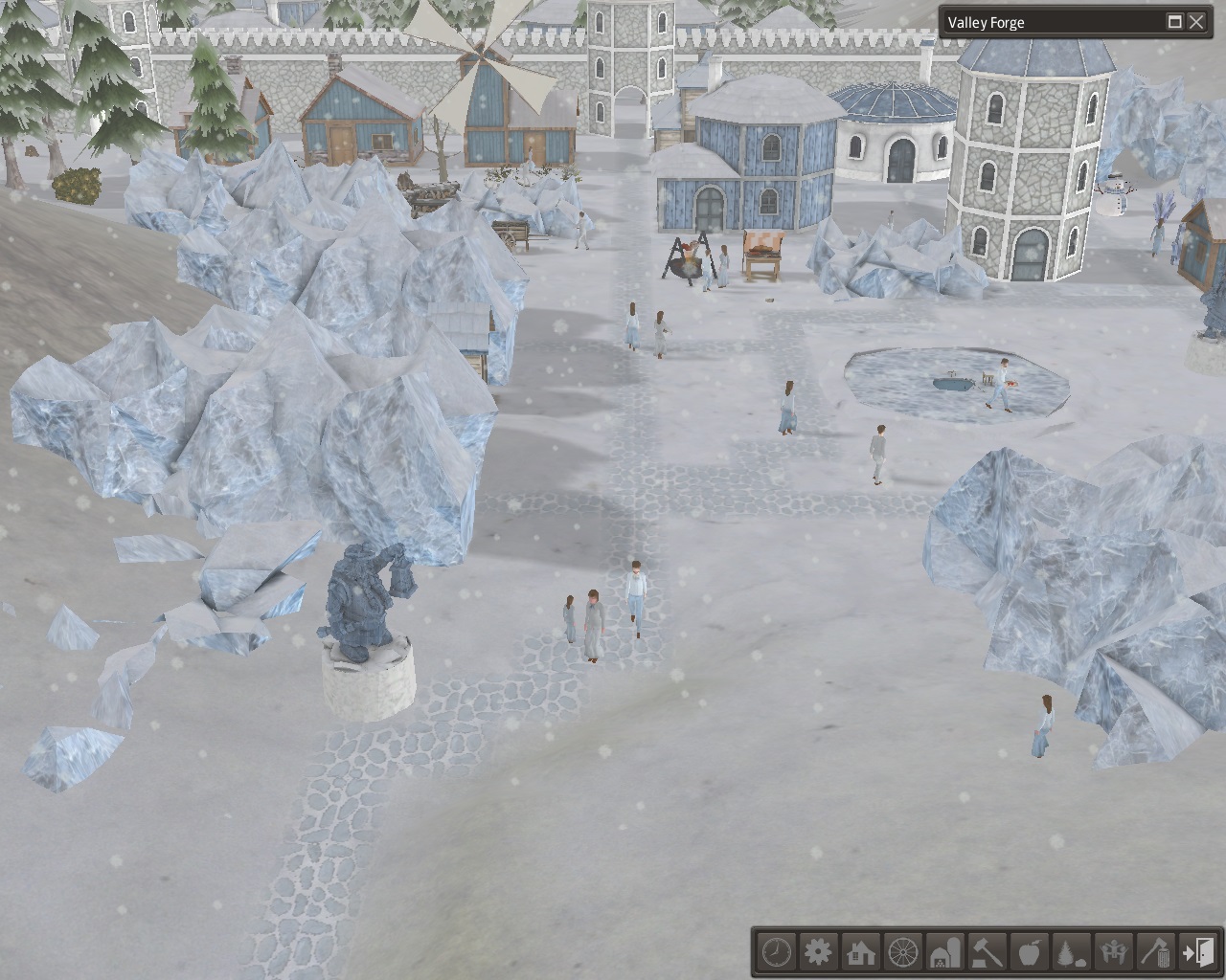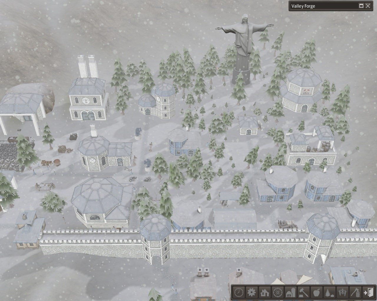 We have truly been blessed here in Valley Forge and the magnificent Cristo Redentor statue is a constant reminder of that.  The town records show that by winter of our 18th year we had a population of 183 happy healthy citizens.  The town has 44 tiny, friendly blue, and forge wood houses scattered around town including the ice caves there by the dock.  No, sorry weary traveler, no boarding house.