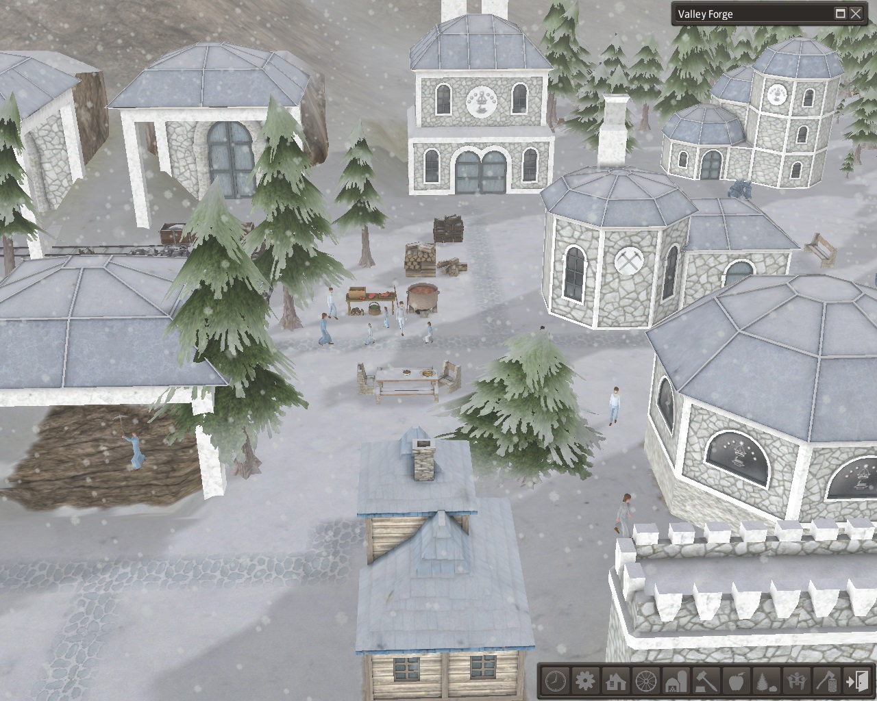 Yes, weary traveler, we've come a long way since we first came out of those caves.  Valley Forge has done quite well despite the adverse conditions.  It is difficult enough in the mountains with a cold snowy climate, but here the elk herds were small, few, and far between.  We did not hunt, and we had more children to feed than adults to feed them.  The parents and grandparents living down in the caves helped out and still do to this day.  They insist on sending up supplies for us including fish, mushrooms, bear meat, furs, coats, and tools.  We may not have survived without their help.