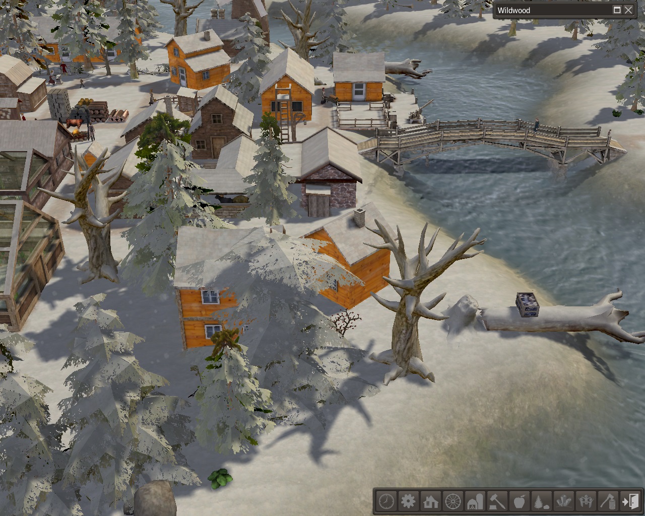One family chose to stay and be caretakers of the boarding house on the other side of the river, but by winter the other 3 families had houses on the west side of town.  The houses were built just past the gemsmith.  A small storage unit and stockpile were built next to the gemsmith with another woodcutter across from it. We were always short of firewood.   A school was built on the corner; the children of the new families and miners would not have as far to go to the school in town.