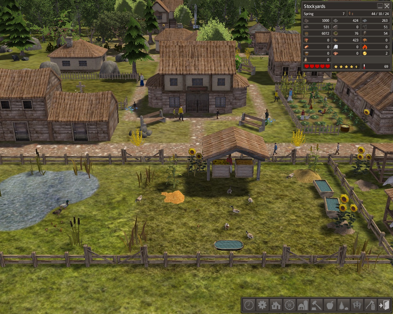 Despite the past tragedy, the vast majority of Stockyards' citizen were happy and all were healthy.  Our crop field, farmyards, hedgerows, and gatherer provided us with a wide variety of fruits and vegetables.  Our stockyards gave us milk, meat, and eggs
