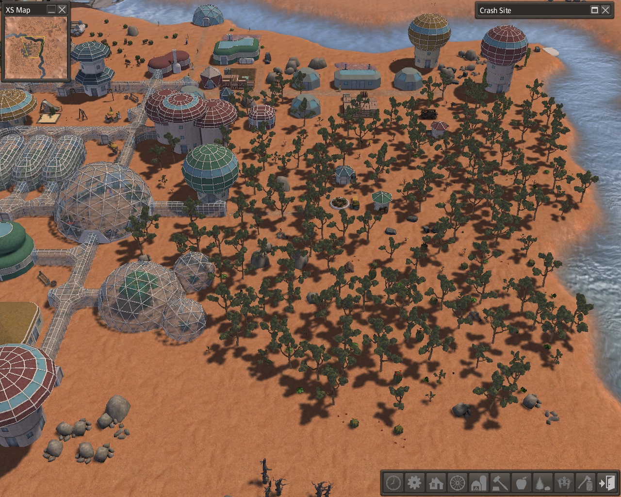 A mineral extractor was built by the main stockpile.  It would use less logs which we were always short of, and it would make the wood alloy and glass faster than the mud works.  Until we had more workers, we would only operate the mineral extractor.  A 2nd forester was built west of the complex so we would have enough raw materials to operate both.  The extractor had only just been built when a couple with an adult child came from the Mother Ship.  A canopy house was built for them by the hydro pod, not far from our Command Center.
